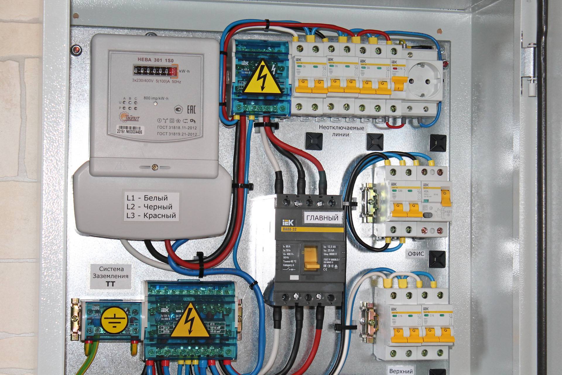 Электрощит — это устройство, которое принимает электроэнергию от общей сети и распределяет её по помещениям и потребителям. Он предохраняет линии от перегрузок и коротких замыканий и обеспечивает безопасность устройств, работающих от электричества. Внутри электрощита находятся вводной автомат, счётчик, устройство защитного отключения (УЗО) и автоматические выключатели.